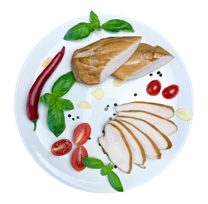 Nasz EKO Filet z Kurczaka Pastwiskowego to najwyższej jakości mięso z kurczaka z chowu ekologicznego – zwierząt karmionych naturalnie, żyjących w zgodzie z rytmem natury. Peklowany bez pośpiechu, następnie wędzony i parzony, zachowuje soczystość oraz głęboki aromat, bez przesadnej słoności i bez sztucznych polepszaczy smaku.