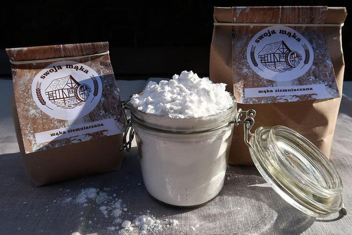 Mąka ziemniaczana, zwyczajowo nazywana mączką ziemniaczaną lub skrobią ziemniaczaną. Pozyskiwana jest z bulw specjalnie wyselekcjonowanych ziemniaków. Bulwy są rozdrabniane i płukane, aby pozyskać skrobię. Woda ze skrobią jest następnie odparowywana. W ten sposób uzyskuje się biały, matowy proszek, który chrzęści jak się go ściśnie.