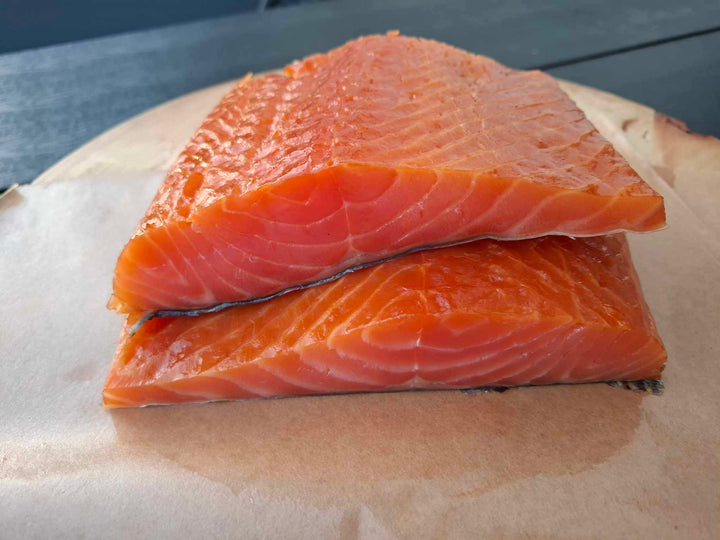 Płat z łososia wędzony na zimno. Soczyste i delikatne różowe mięso.