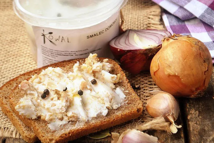 Domowy smalec naszego autorstwa to przepyszne połączenie zmielonego mięsa i słoniny wieprzowej z dodatkiem cebuli oraz czosnku. Posiada bogaty aromat, który już niejednokrotnie skutecznie uwodził smalcowych smakoszy. Znakomicie nadaje się zarówno do kraszenia (ziemniaków, pierogów), jak i na pajdę chleba w towarzystwie ogórka kiszonego.