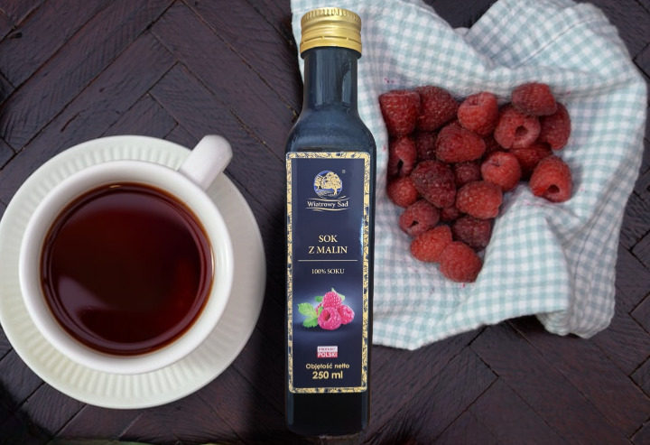Składniki: 100% sok tłoczony z malin.