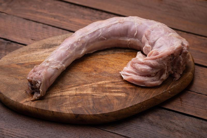 Surowa szyja z indyka. Waga jednej sztuki wynosi od 250 do 350g.