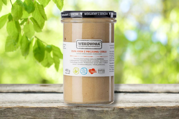 Klasyczna zupa kuchni francuskiej, czyli zupa cebulowa. Sekretem wyjątkowego smaku jest jej prosty skład:esencjonalny wywar z warzyw, biała cebula, czosnek i oczywiście białe wino, które nadaje oszałamiającego aromatu, Cebulową Wekowni przygotowaliśmy w wersji zupy krem. Wystarczy ją podgrzać przez kilka minut i jest gotowa do jedzenia, najlepiej smakuje z serowymi grzankami.